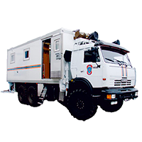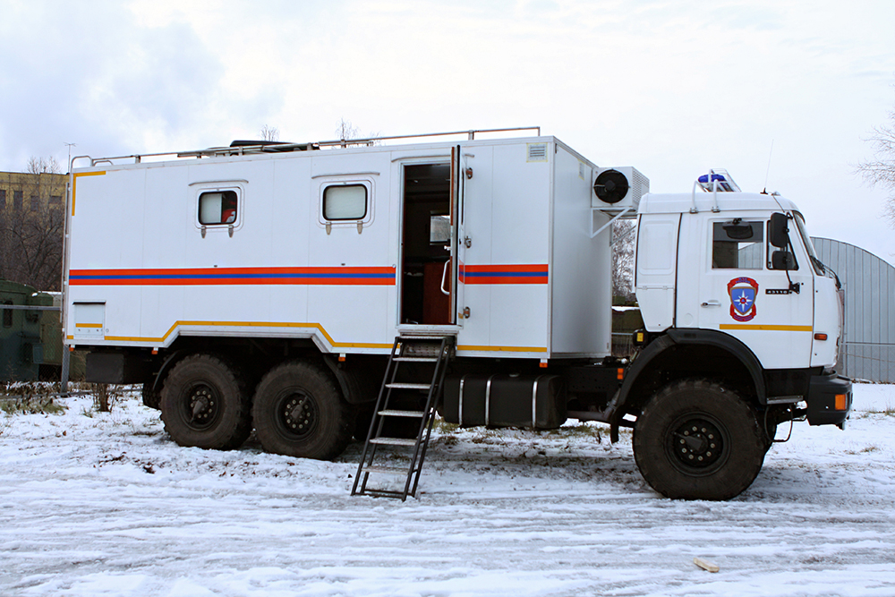 Передвижная лаборатория ГДА (МПУ) НА ШАССИ КАМАЗ-43118-46 с кунгом, переоборудованным под МПУ с модульной системой Alpha-M для постоянного контроля содержания ядовитых и взрывоопасных газов в воздухе рабочей зоны с телеметрией.